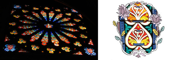 Ich finde buntes Kirchenfensterglas sehr inspirierend. In Freiburg habe ich das wahrscheinlich schönste Kirchenfenster überhaupt gesehen. Ihr werdet es auf jeden Fall in meinen neuen Designs wiederfinden – die Muster sind einfach großartig.