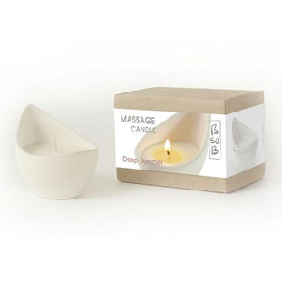 Die Massagekerze sieht aus wie eine normale Duftkerze, aber das geschmolzene Wachs lässt sich als Massage-Öl nutzen. Sehr cool! Besonders schön ist auch die Keramikform, die man, wenn die Kerze heruntergebrannt ist, noch weiter benutzen kann.